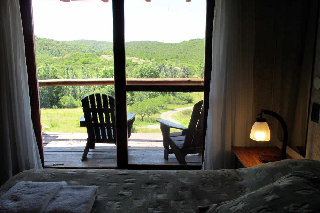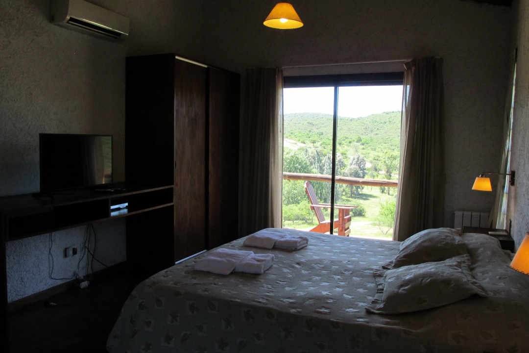 Habitación con amplio balcón y vista a las sierras.